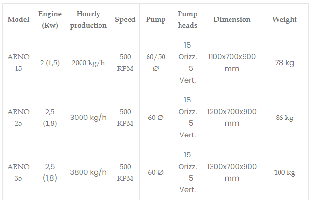 Destemmer motor equipped with a centrifugal pump for transfer the must inside the fermentation tank. Available in the following models: smalted iron; completely in stainless steel. On all models the basket and the centrifugal pump are made in stainless steel. The machine is completely opened in a few seconds and allows the carrying out of the operations of maintenance and cleaning in a simple and fast way.